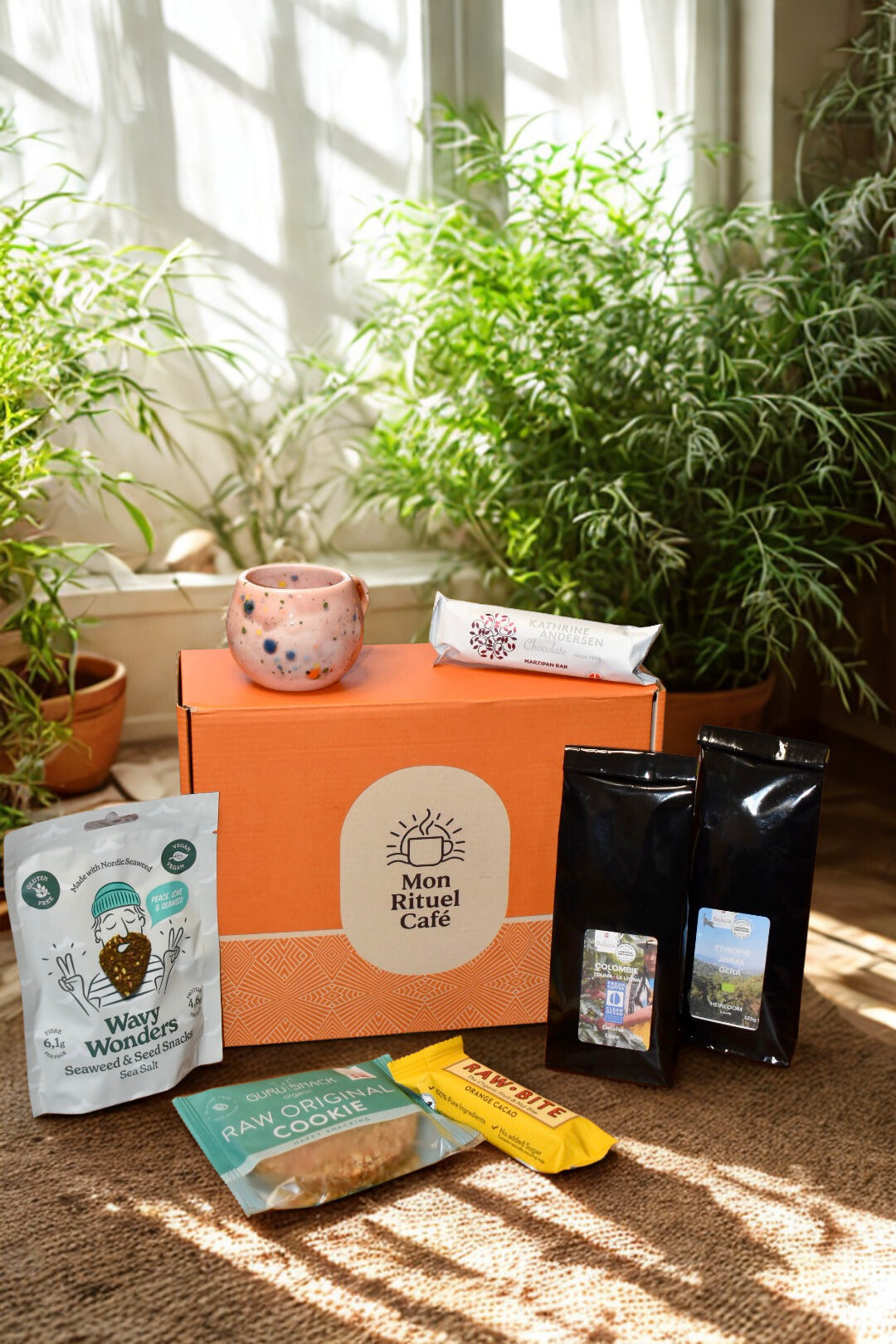 Contenu: 2 cafés de spécialité + accessoire + douceurs saines + livret digital de rituels.