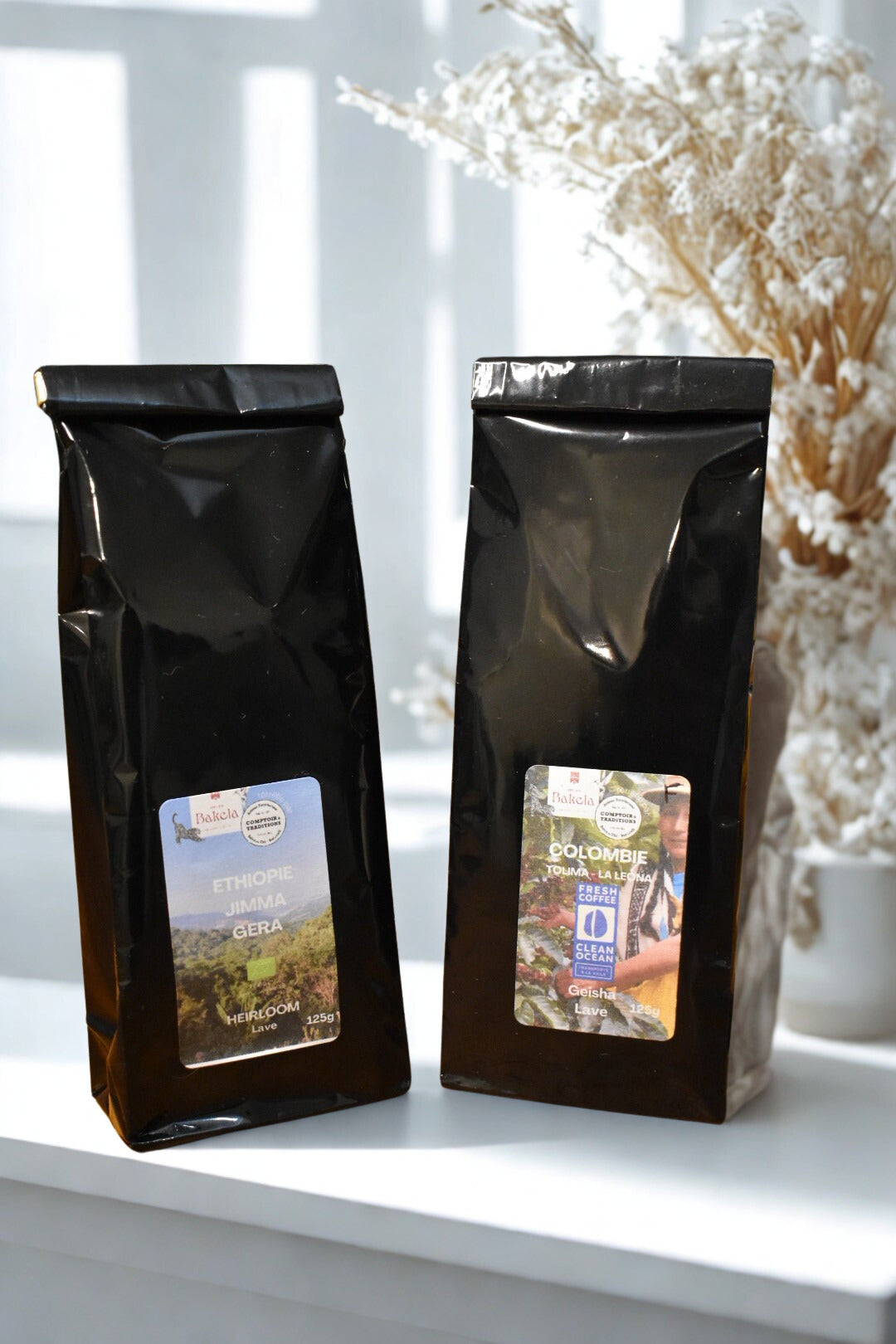 Deux cafés de caractère, choisis avec amour et expertise, livrés chez vous pour que chaque tasse soit un petit voyage sans effort.